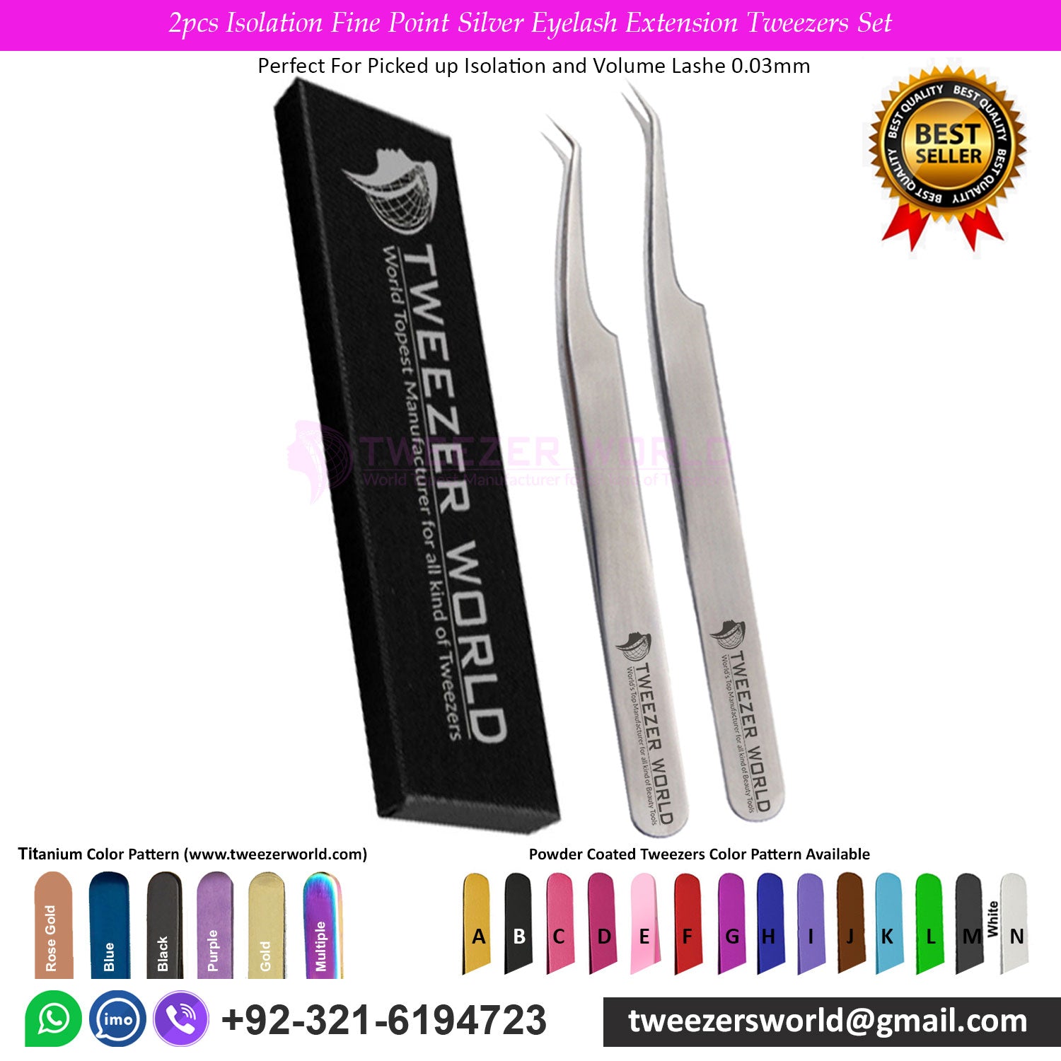 1. Product name: 2pcs Isolation Fine Point Silver Eyelash Extension Tweezers Set