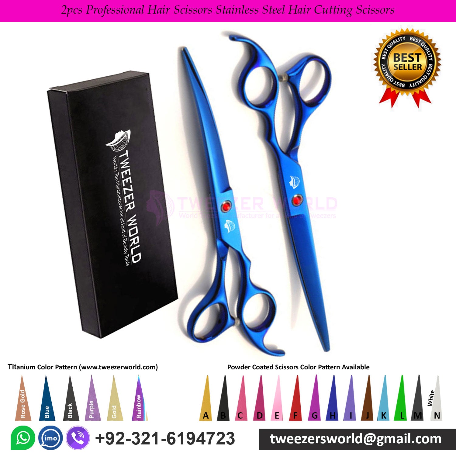 Products Name: 2pcs Professional Hair Scissors Stainless Steel Hair Cutting Scissors set Manufacturer By TWEEZER WORLD