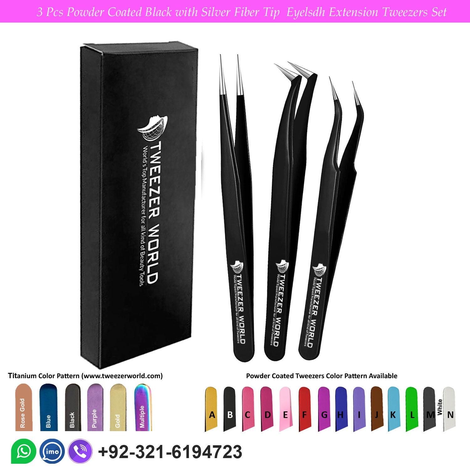 3 Pcs Powder Coated Black with Silver Fiber Tip Eyelash Extension Tweezers Set Description: Classic Matt or...