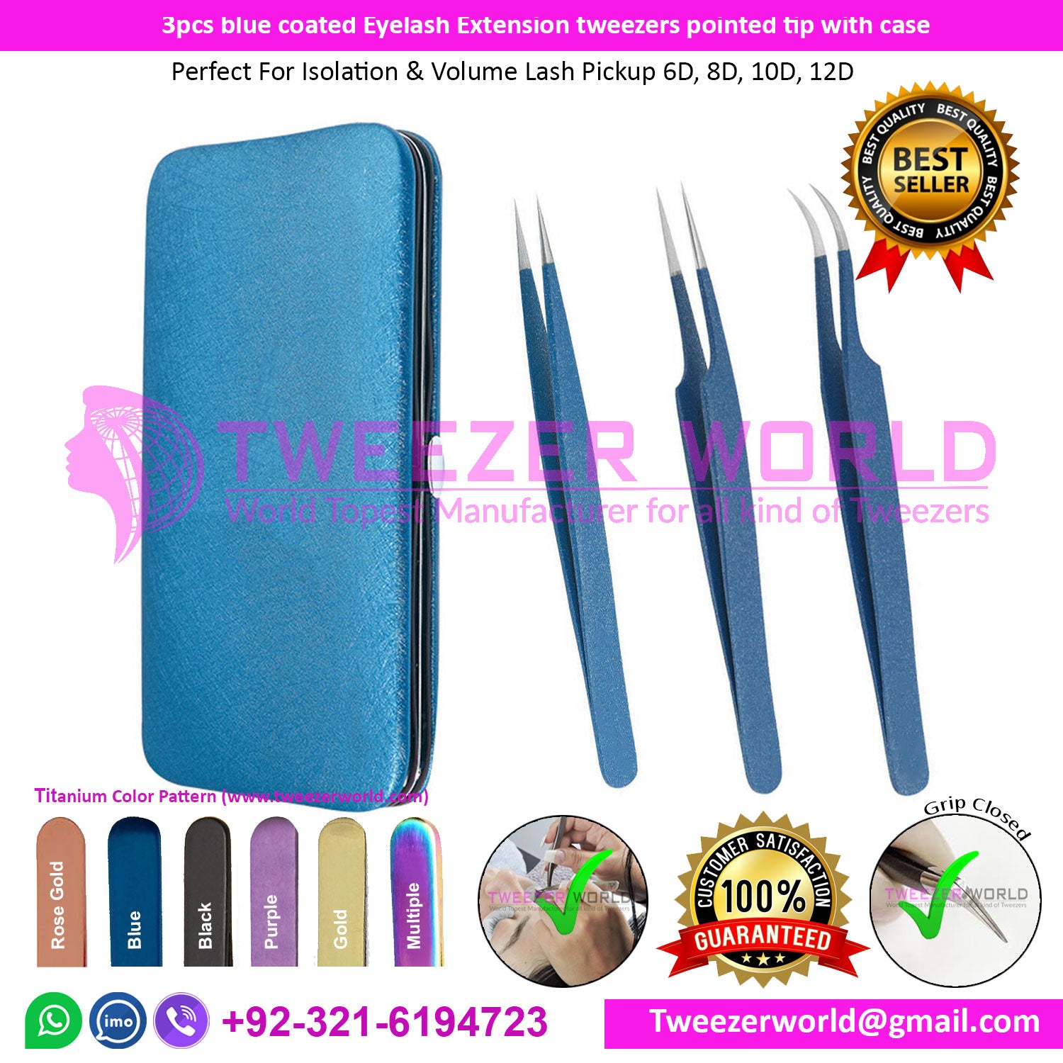 1. Product name:3pcs blue powder coated eyelash extension tweezers