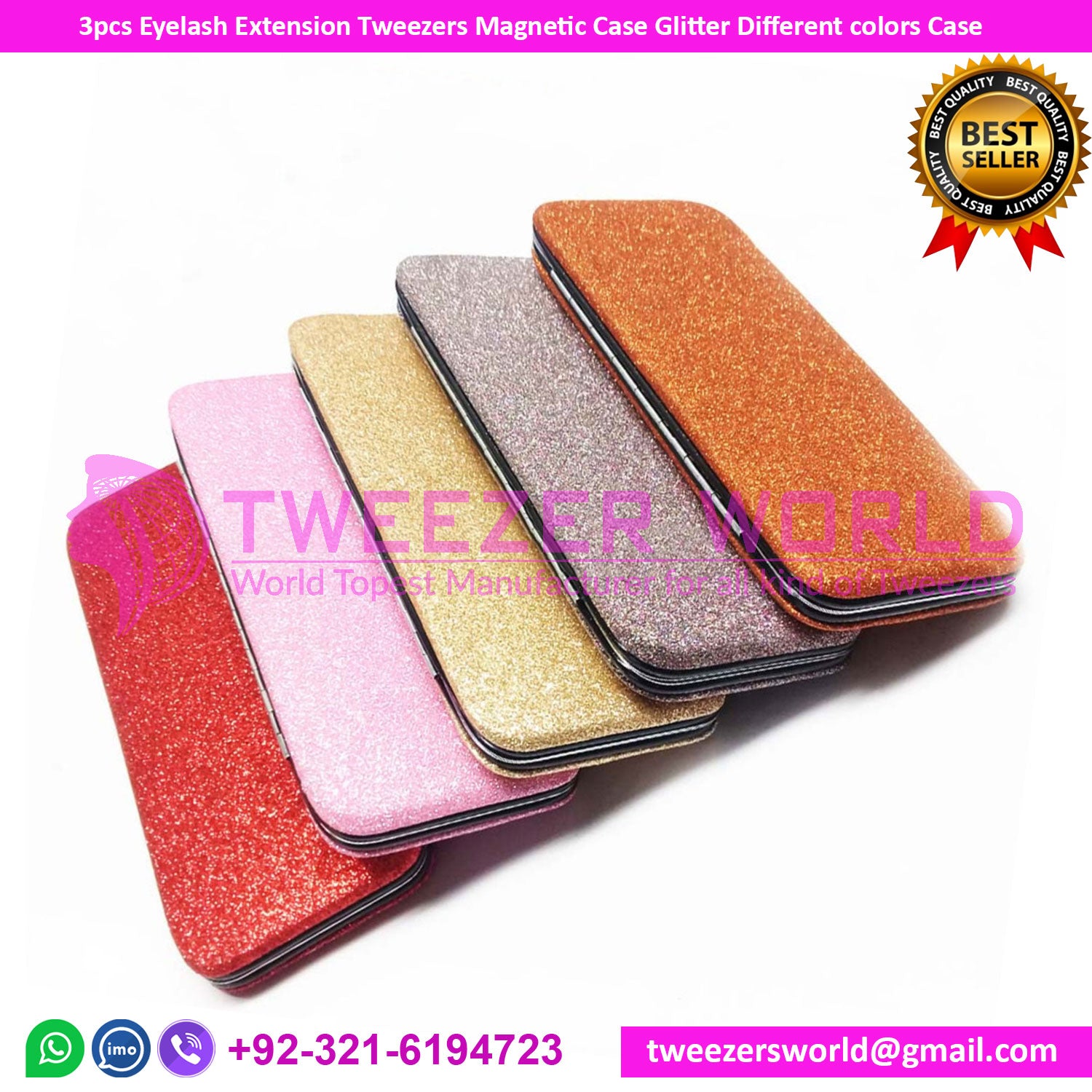 Product Name: 3pcs Eyelash Extension Tweezers Magnetic Case Glitter Different colors Case