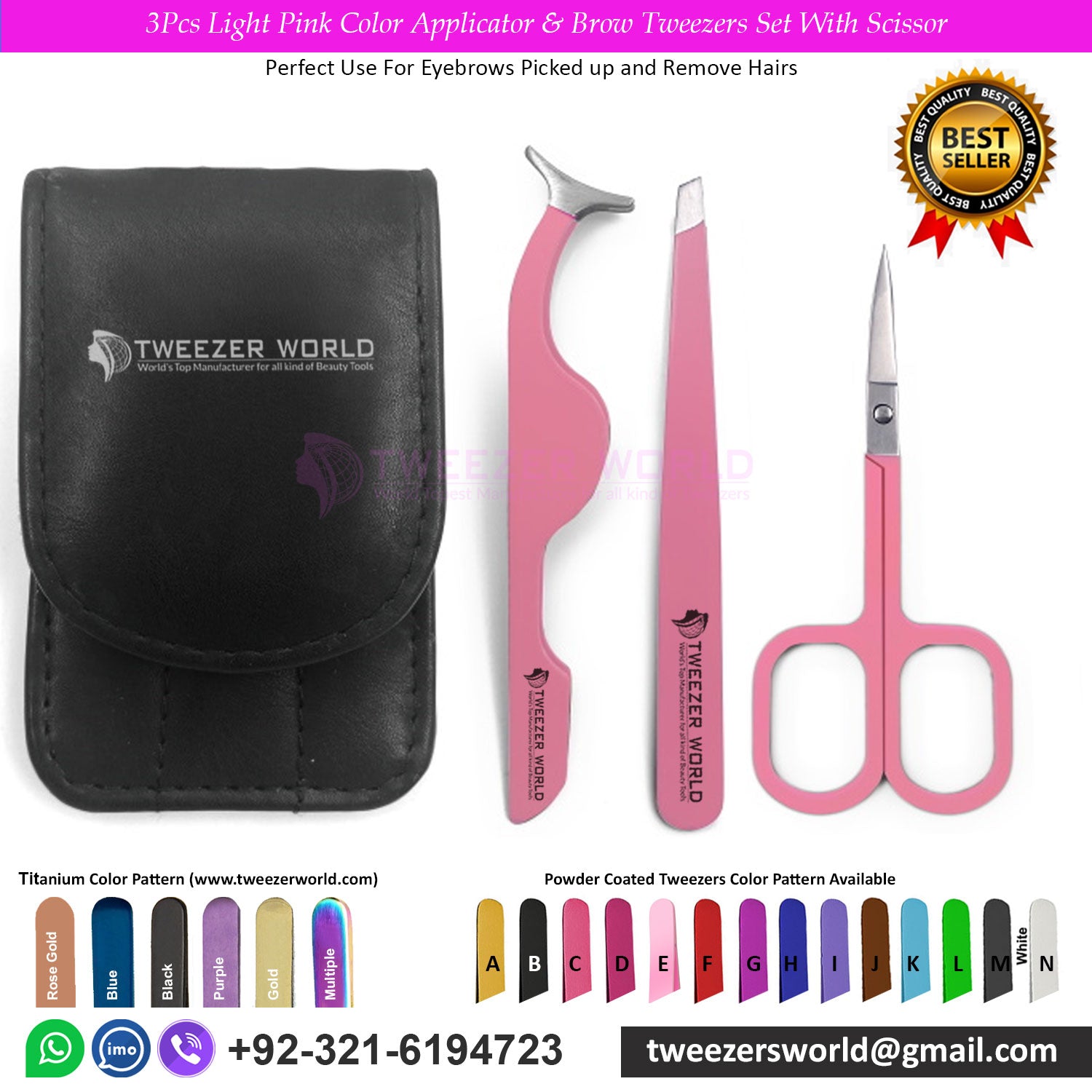 Product Name: 3Pcs Light Pink Color Applicator & Brow Tweezers Set With Scissor