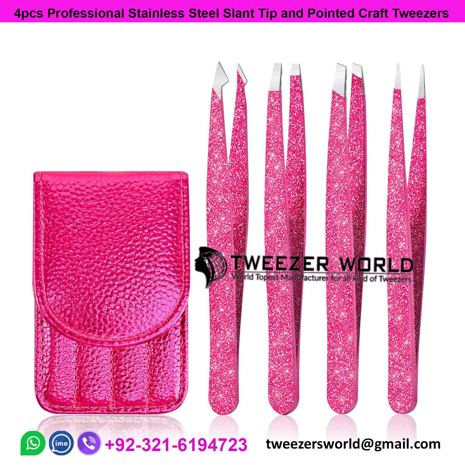 1. Product name:4-piece,Professional Slant Tip and Pointed Tweezers with Leather Case