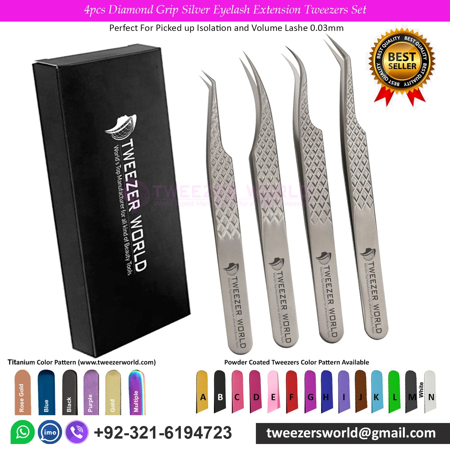• 4pcs Diamond Grip Silver Eyelash Extension Tweezers Set are made of HIGH-GRADE surgical stainless steel