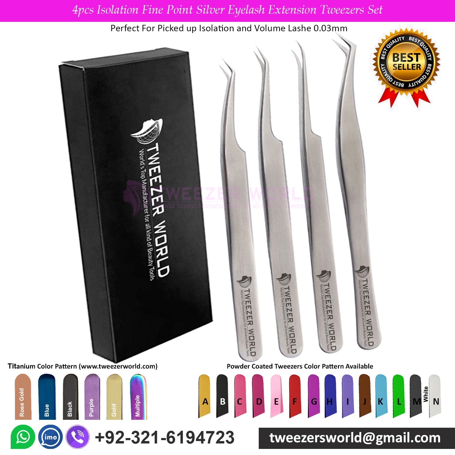 4pcs Isolation Fine Point Silver Eyelash Extension Tweezers Set are made of lightweight stainless steel. Use them to pick up a single lash extension and dip it into the eyelash adhesive. This tool is easy to hold and control, so you’ll be confident as you work on your client’s lashes. For professional use only. Dull Matt or Stain Finish Tweezer World Company Manufacturer of all types of tweezers is made of superior quality stainless steel J1/410, HRC° (hardness) 43° – 45°. Beautifully designed top-quality stainless steel straight tweezers. Perfect For Volume Lash Pickup 2D, 3D, 4D, 5D, 6D, 7D