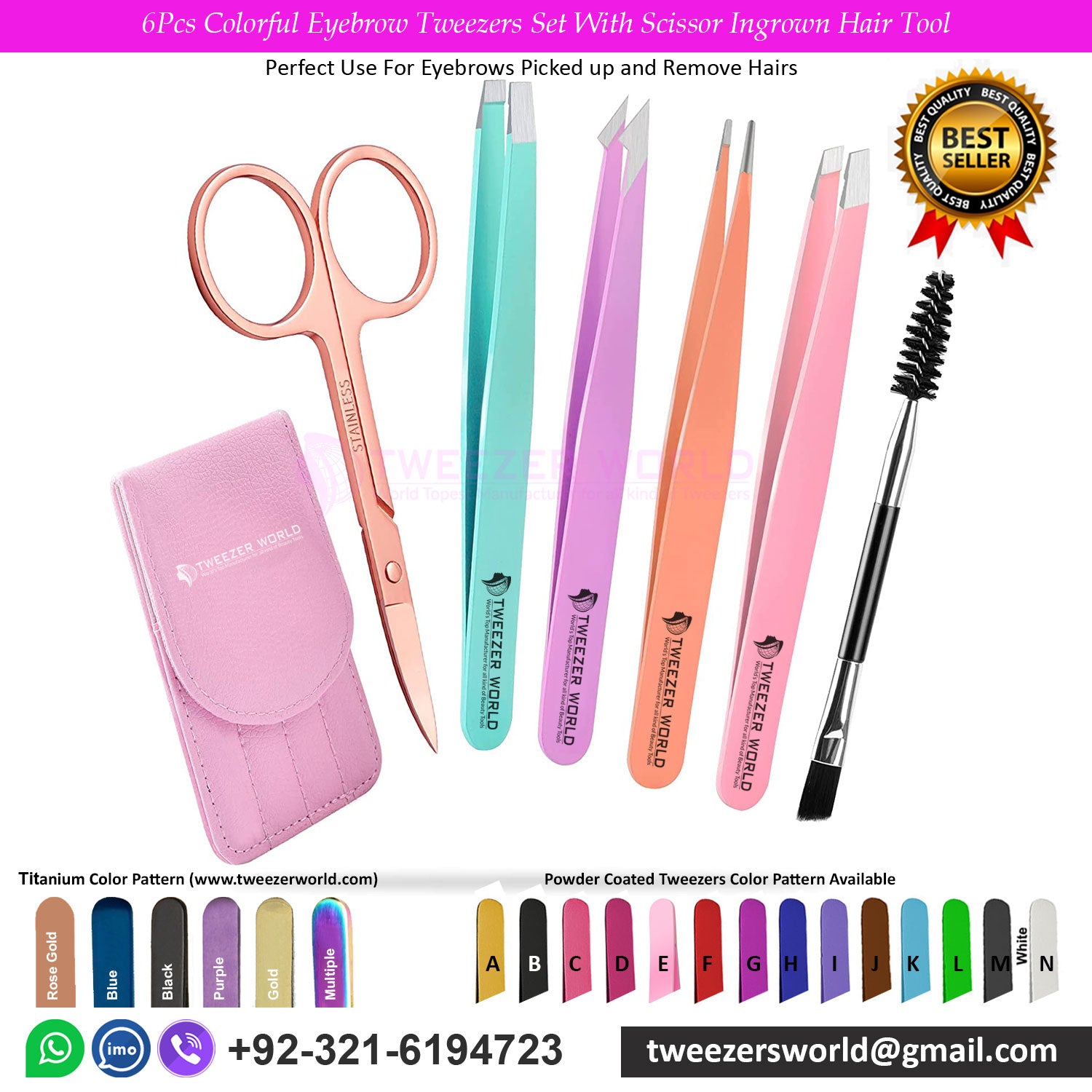 6Pcs Colorful Eyebrow Tweezers Set With Scissor Ingrown Hair Tool[/caption]