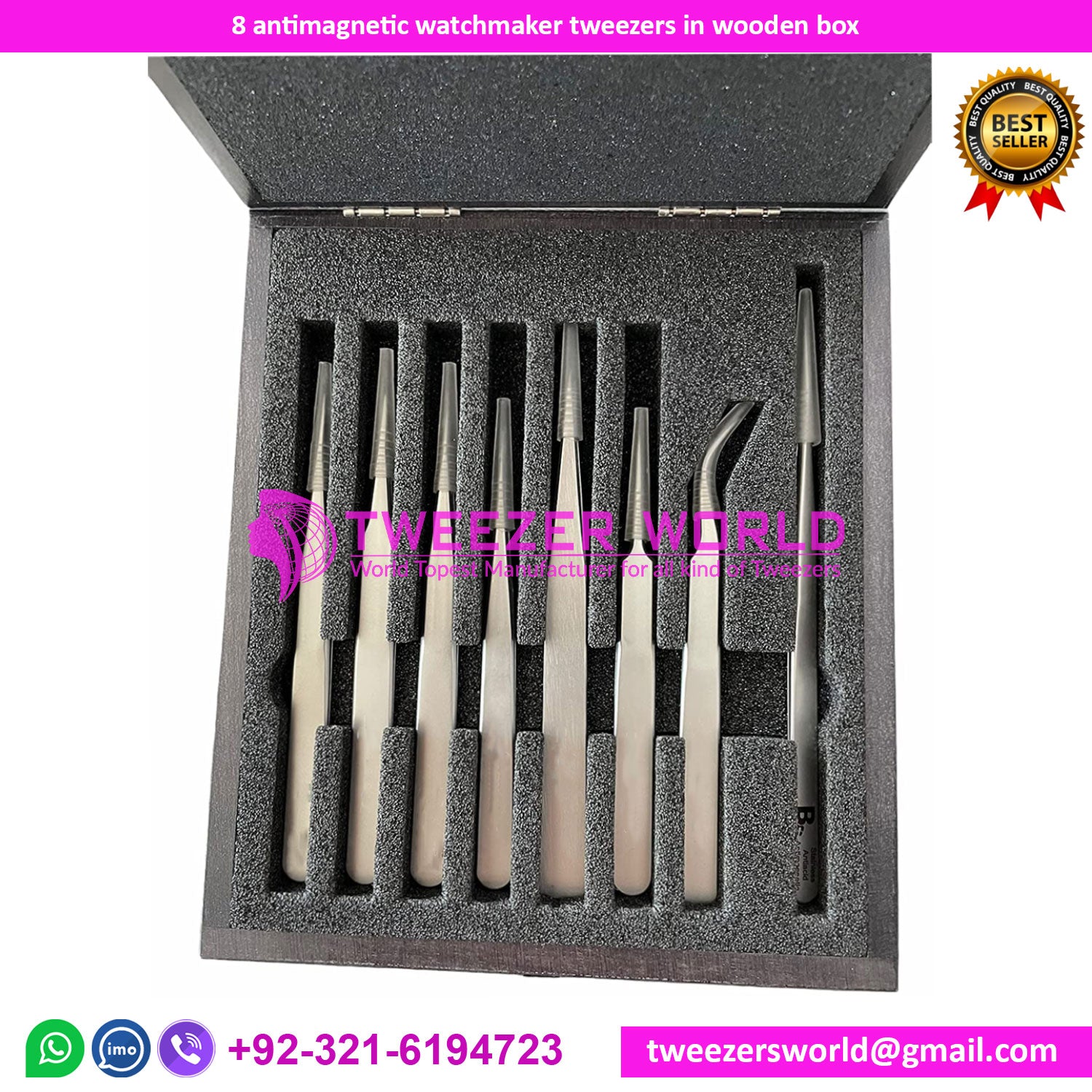 1. Product Name: 8anti magnetic watchmaker tweezers in wooden box