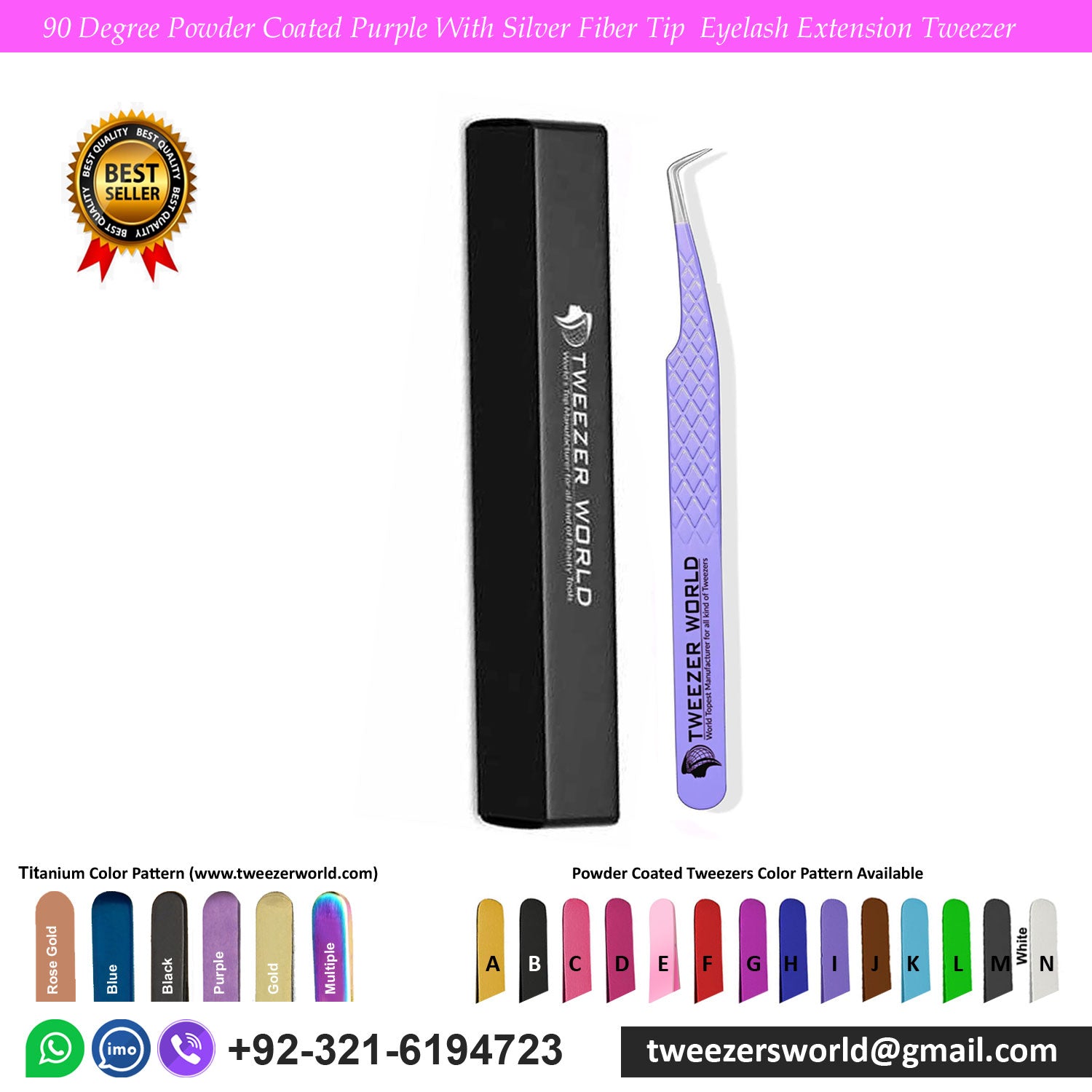 90 Degree Powder Coated Purple With Silver Fiber Tip Eyelash Extension Tweezer Description: Classic Matt or Satin...
