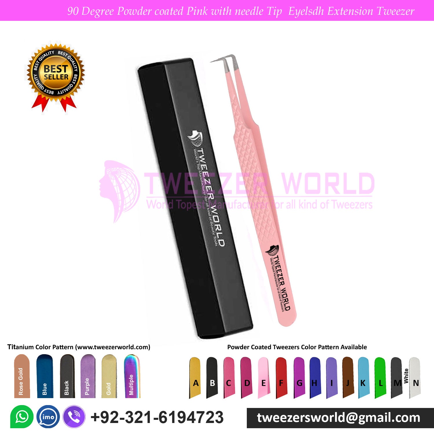 5- Customer Satisfaction World Top eyelash tweezer Manufacturer and exporter company “Tweezer World”. 90 Degree Tweezers Powder Coated Pink For Eyelash Extension Manufacturer BY “Tweezer World”. Manufacturer and Exporter of 6pcs Powder Coated Green With Fiber Tip Eyelash Tweezers Sets Manufacture by Tweezer World.