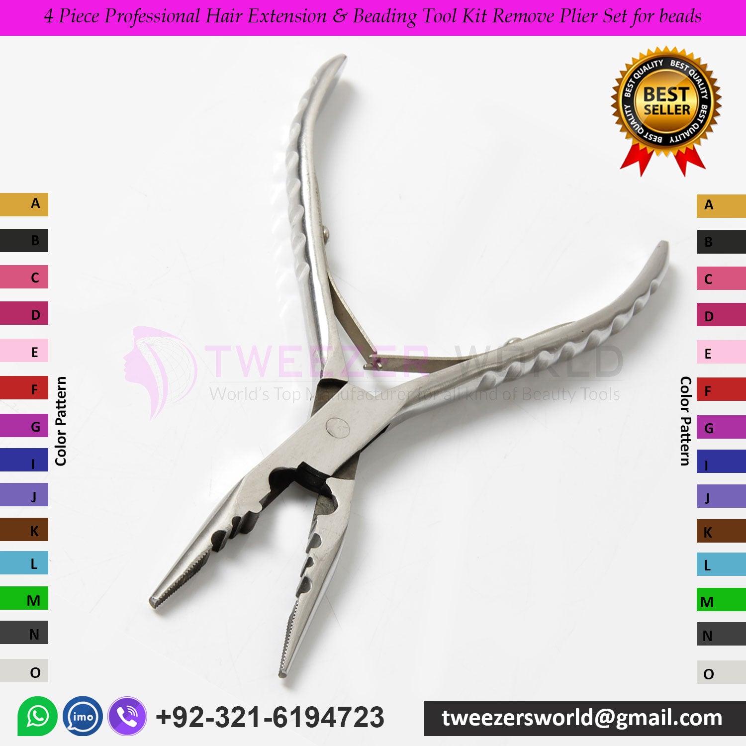 Best 4Pcs Hair Extension & Beading Tool Kit Remove Plier Set for beads |