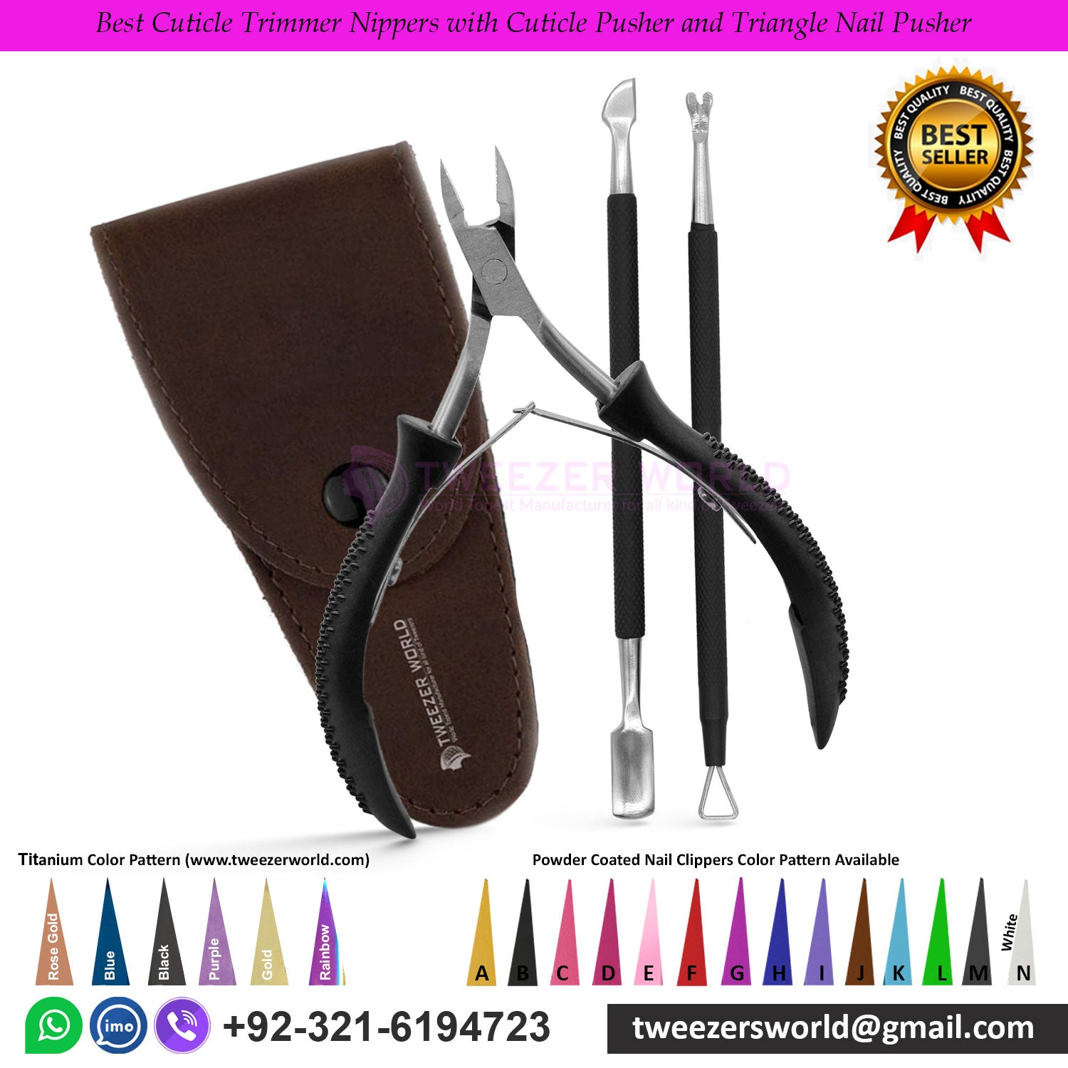 Products Name: Best Cuticle Trimmer Nippers with Cuticle Pusher and Triangle Nail Pusher Manufacturer By TWEEZER WORLD