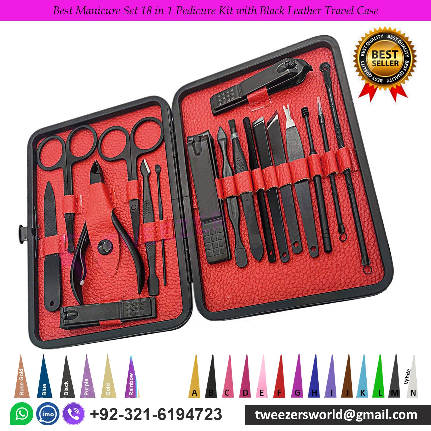 Best Manicure Set 18 in 1 Pedicure Kit with Black Leather Travel Case |