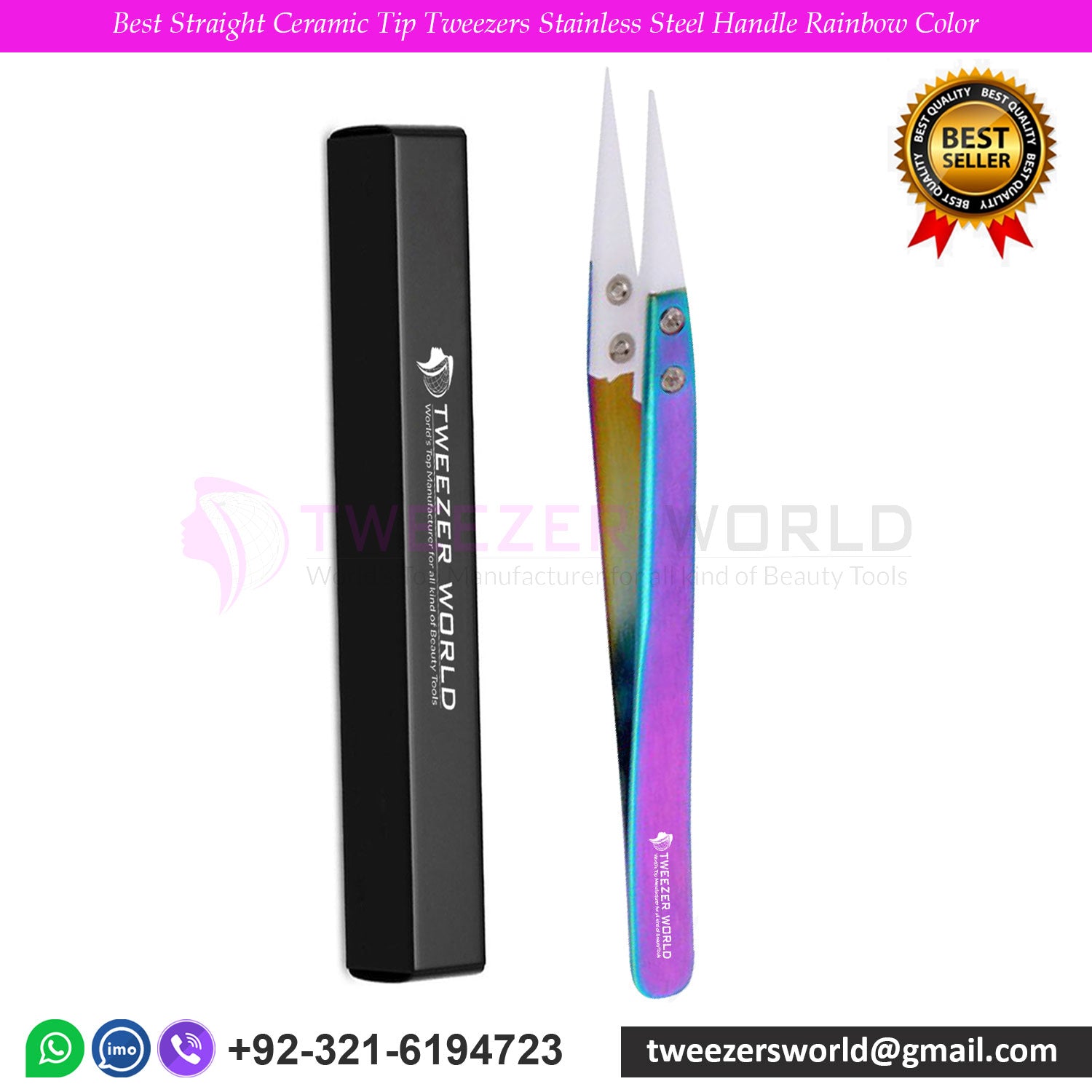 1. Product name: Best Straight Ceramic Tip Tweezers Stainless Steel Handle Rainbow Color
