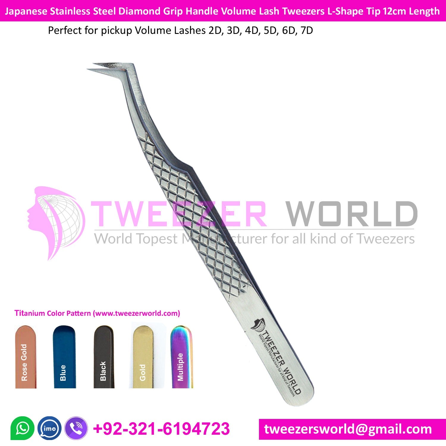 1. Product name: Diamond Grip Handle Volume Lash Tweezers L Shape Tip 12cm Length