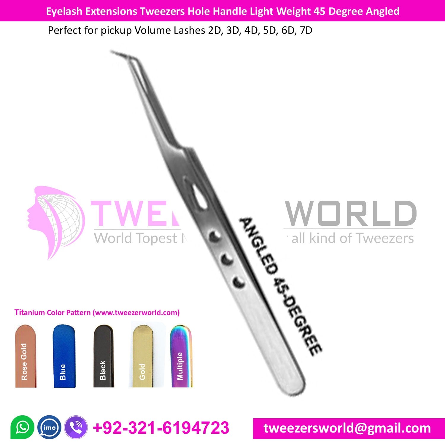 1. Product name: Eyelash Extensions Tweezers Hole Handle Light Weight 45 Degree Angled