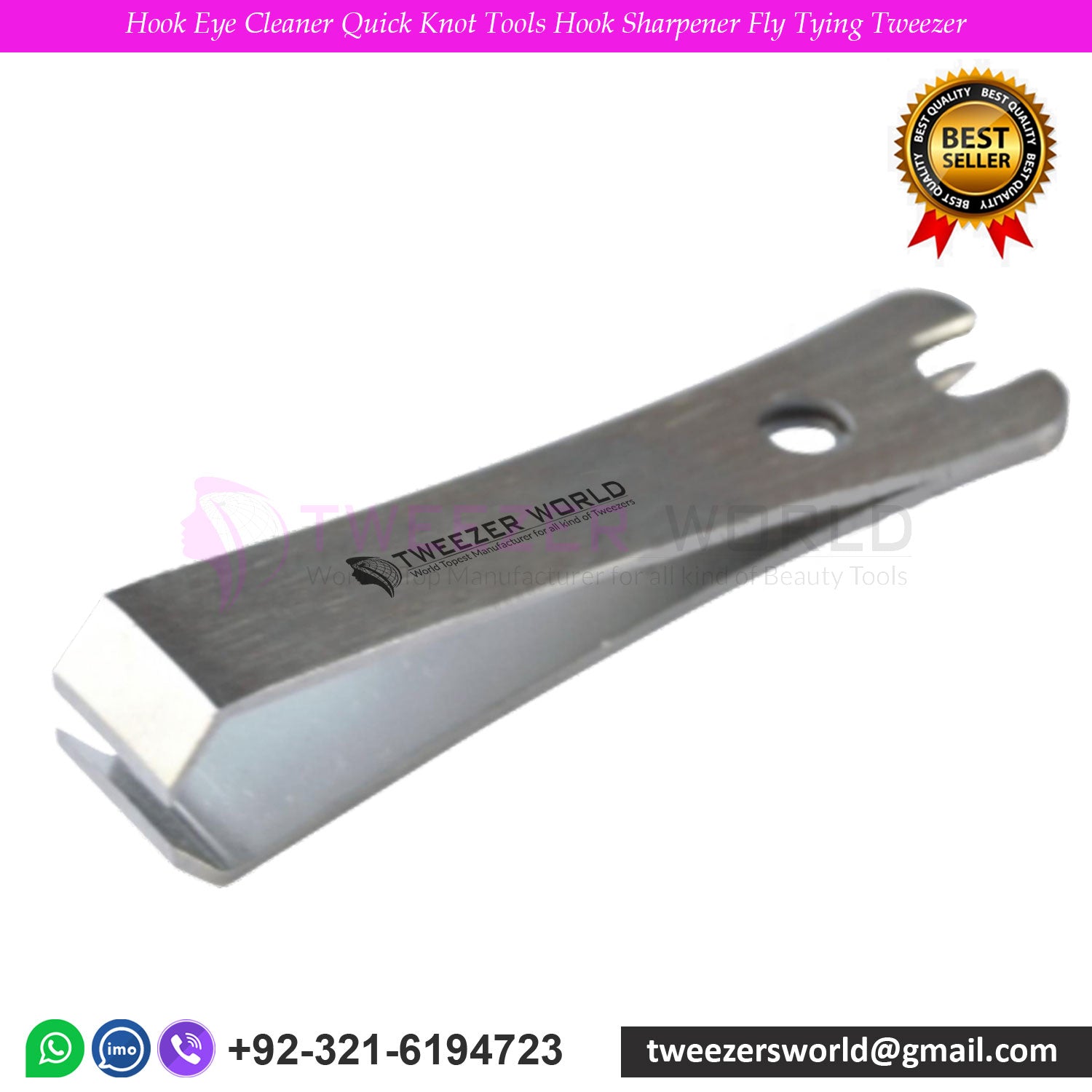 Product Name: Hook Eye Cleaner Quick Knot Tools Hook Sharpener Fly Tying Tweezer Product Description These Tweezers...