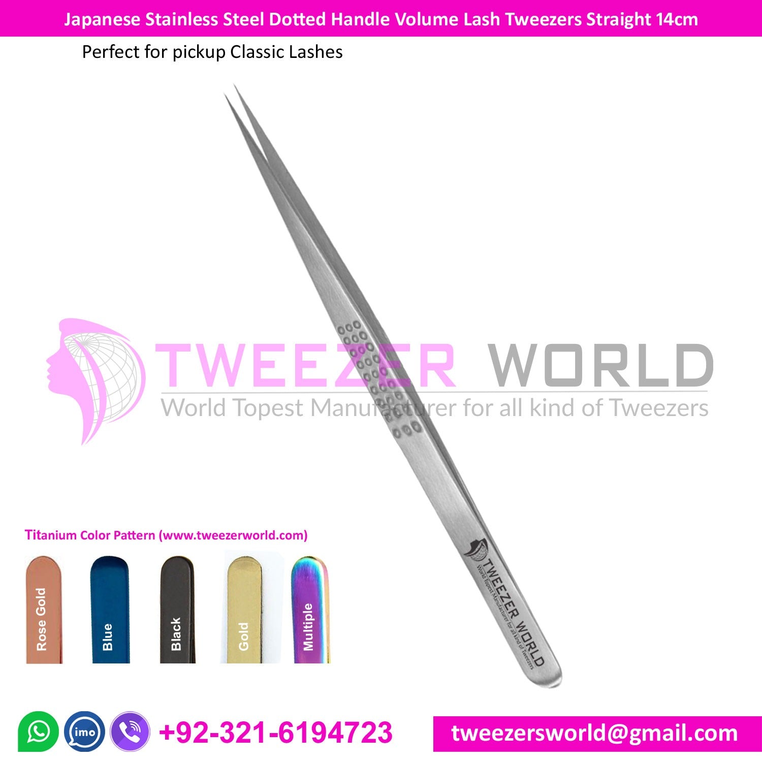 1. Product name: Japanese SS Dotted Handle Volume Lash Tweezers Straight 14cm
