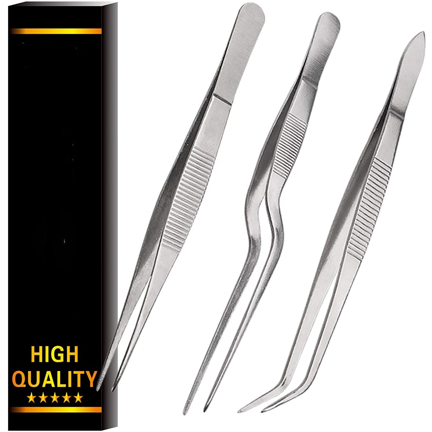 1. Product name: Kitchen Cooking Tweezers 3 Piece Set Stainless Steel Tweezer Precision Offset Tip