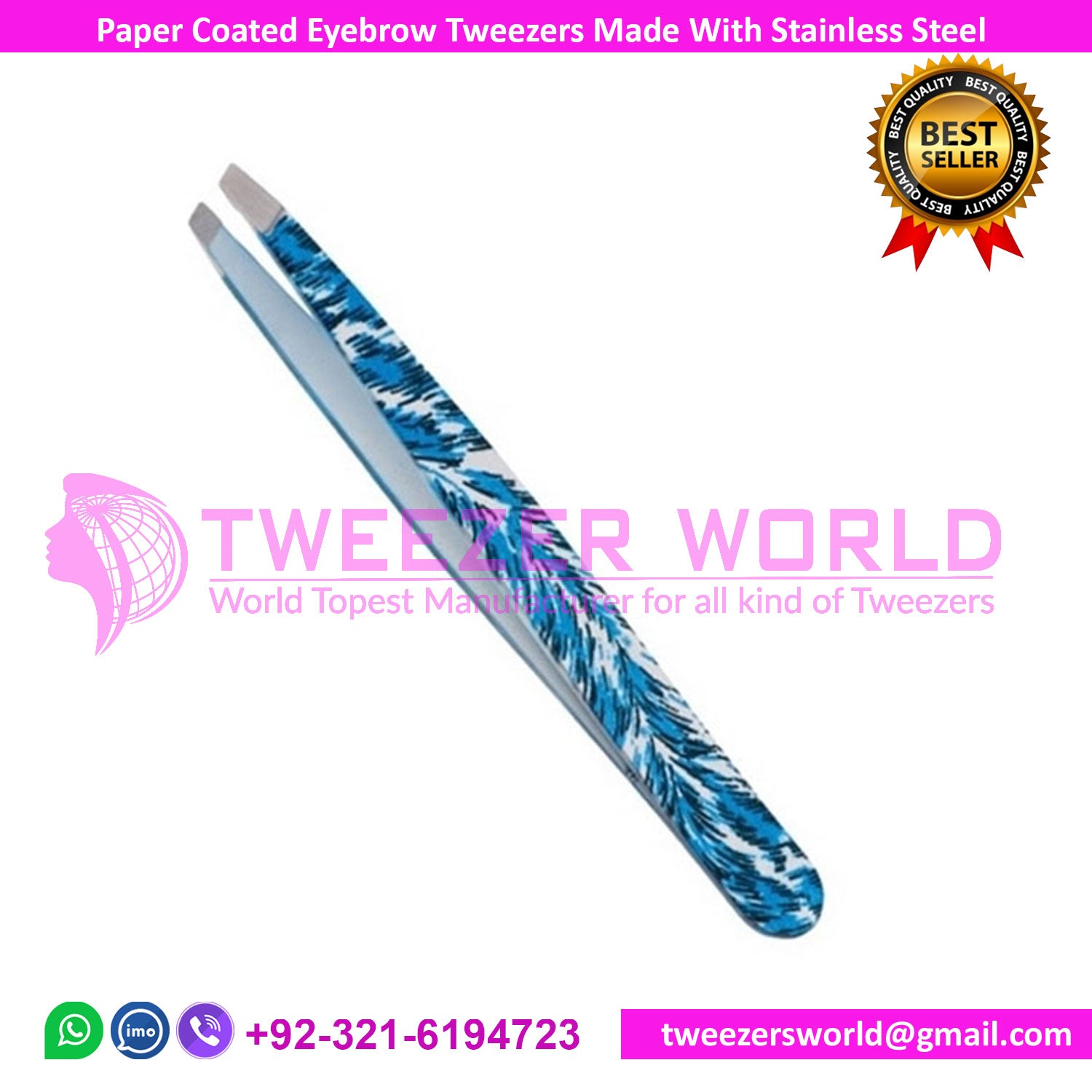 Paper Coated Blue Eyebrow Tweezers With SS Slanted tip[/caption]