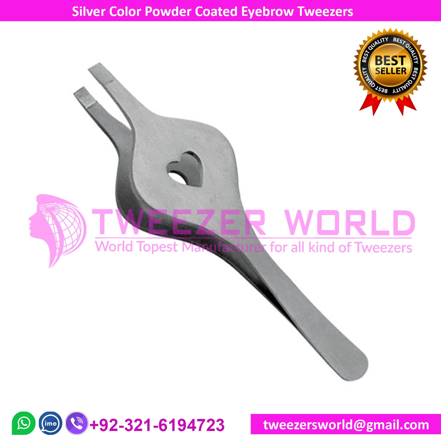 1. Product name: Powder Coated Silver Eyebrow Tweezers