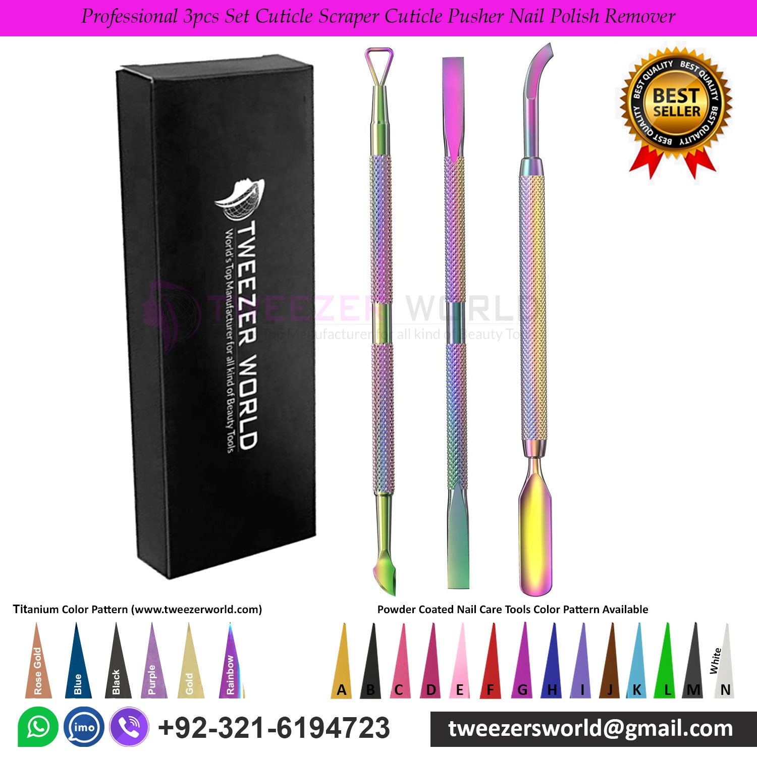 Products Name: Professional 3pcs Set Cuticle Scraper Cuticle Pusher Nail Polish Remover Manufacturer By TWEEZER WORLD