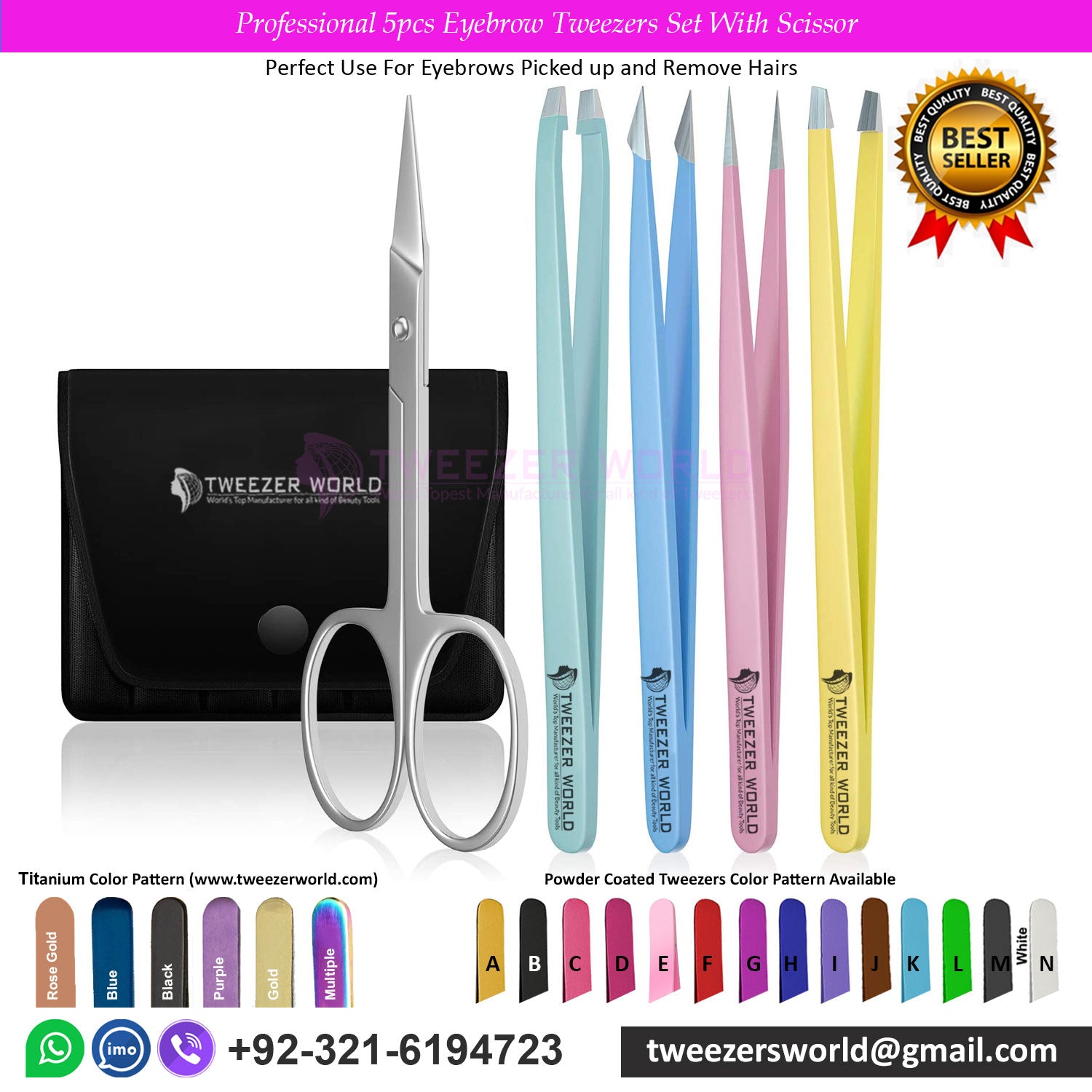 Professional 5pcs Eyebrow Tweezers Set With Scissor