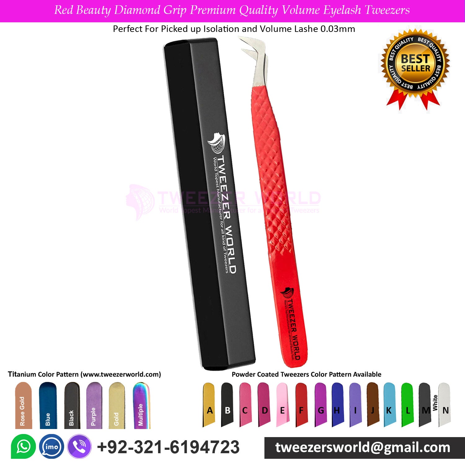 Red Beauty Diamond Grip Premium Quality Volume Eyelash Tweezers
