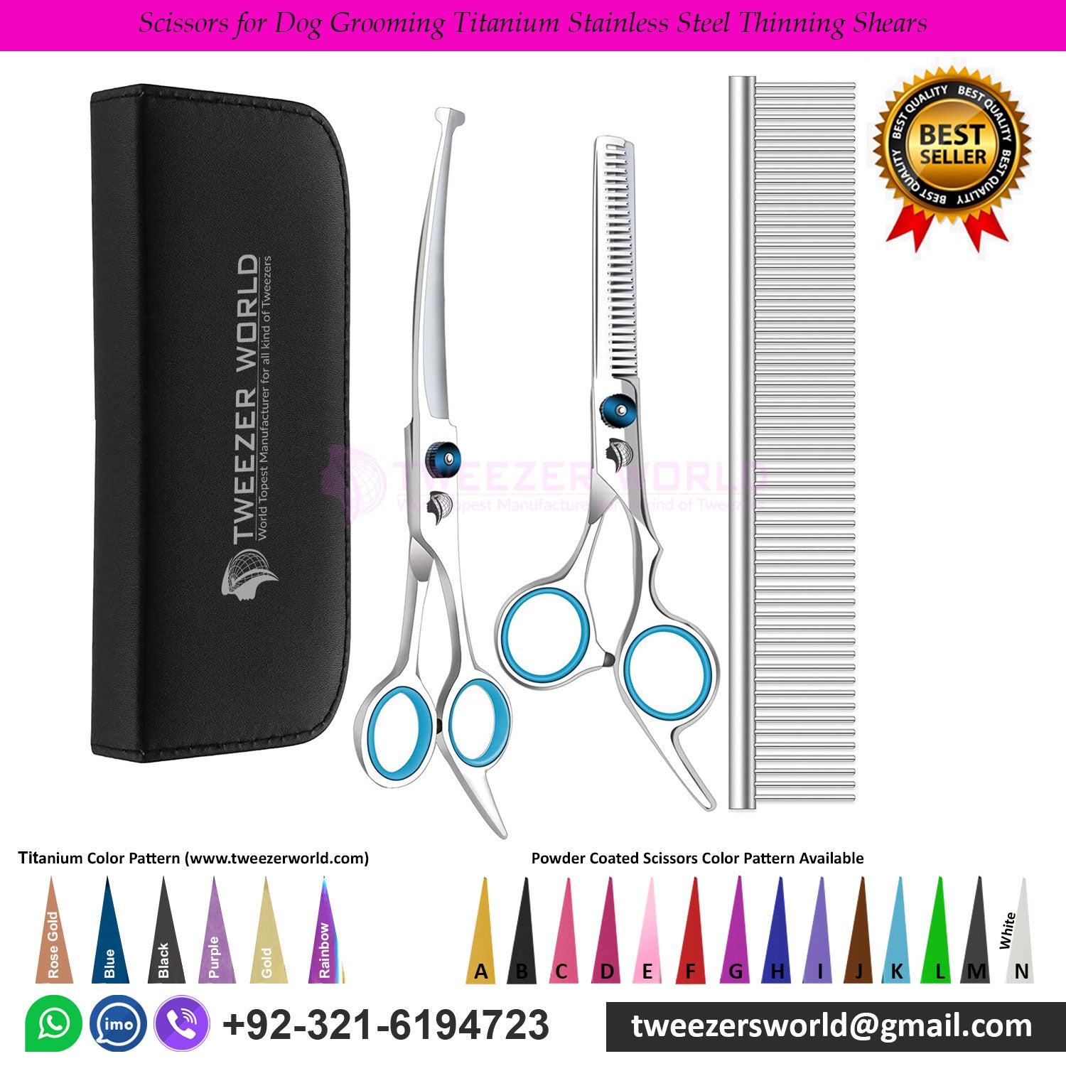 Products Name: Scissors for Dog Grooming Titanium Stainless Steel Thinning Shears By TWEEZER WORLD