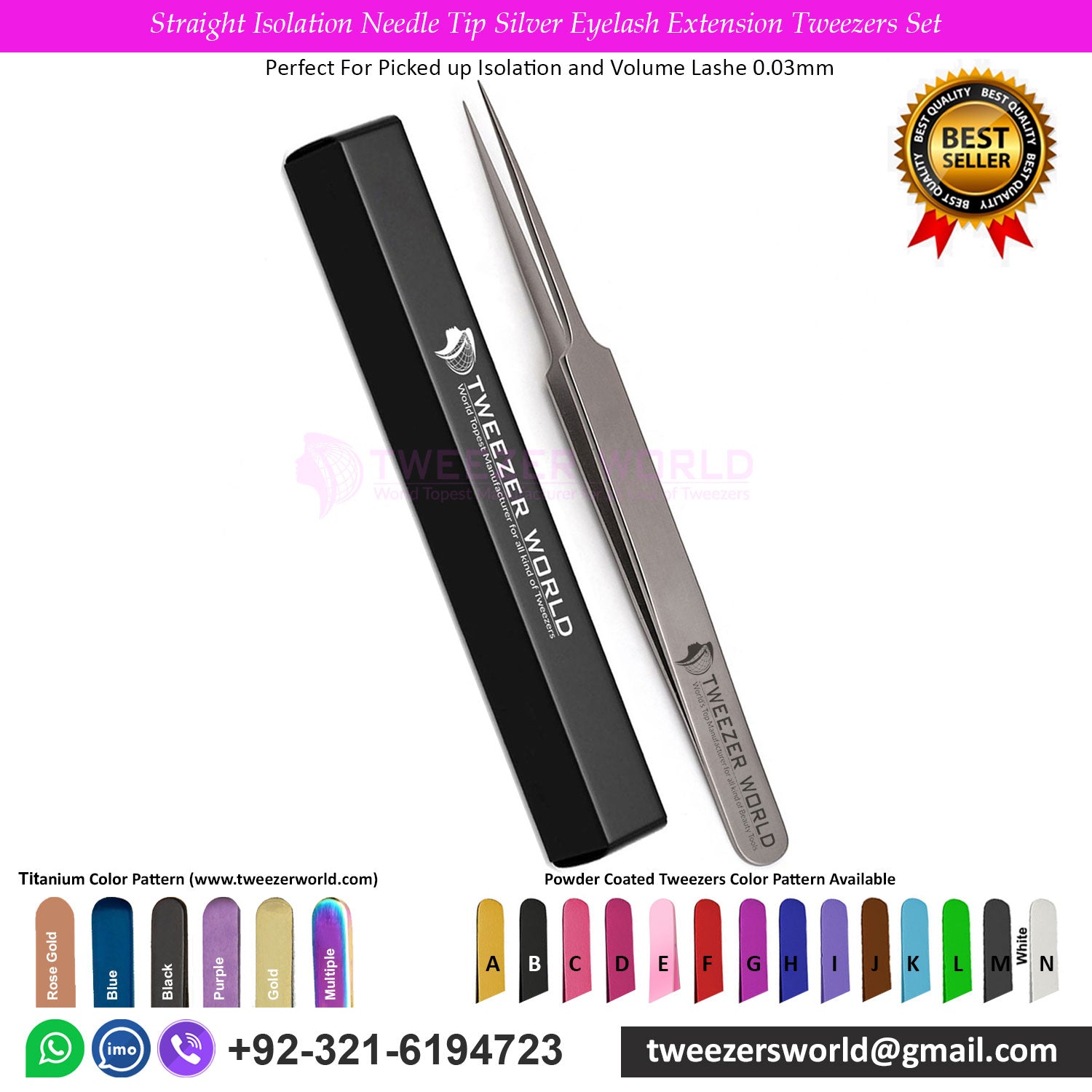 Straight Isolation Needle Tip Silver Eyelash Extension Tweezers are made of lightweight stainless steel. Use them to pick up a single lash extension and dip it into the eyelash adhesive. This tool is easy to hold and control, so you’ll be confident as you work on your client’s lashes. For professional use only. Dull Matt or Stain Finish Tweezer World Company Manufacturer of all types of tweezers is made of superior quality stainless steel J1/410, HRC° (hardness) 43° – 45°. Beautifully designed top-quality stainless steel straight tweezers. Perfect For Volume Lash Pickup 2D, 3D, 4D, 5D, 6D, 7D