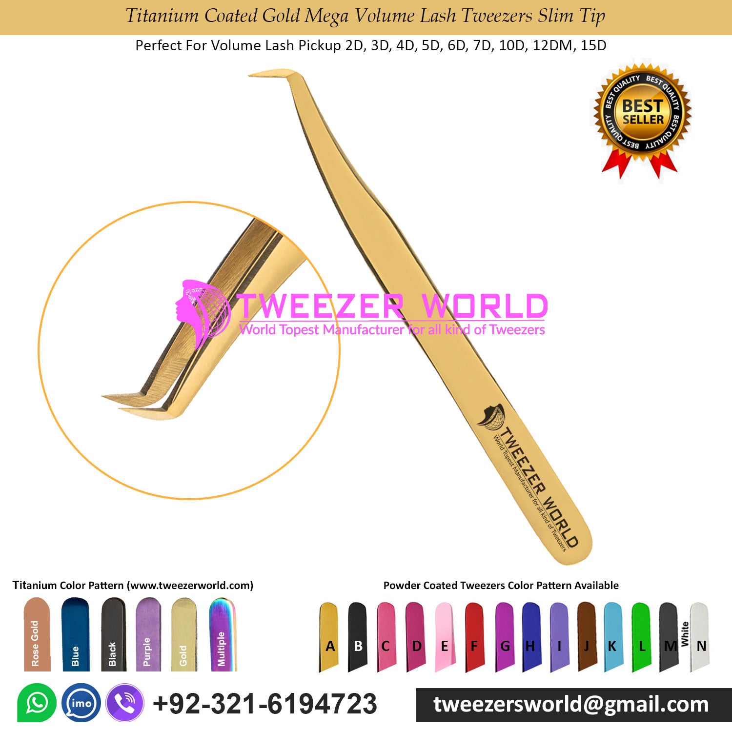 1. Product name: Titanium Coated Gold Mega Volume Lash Tweezers Slim Tip