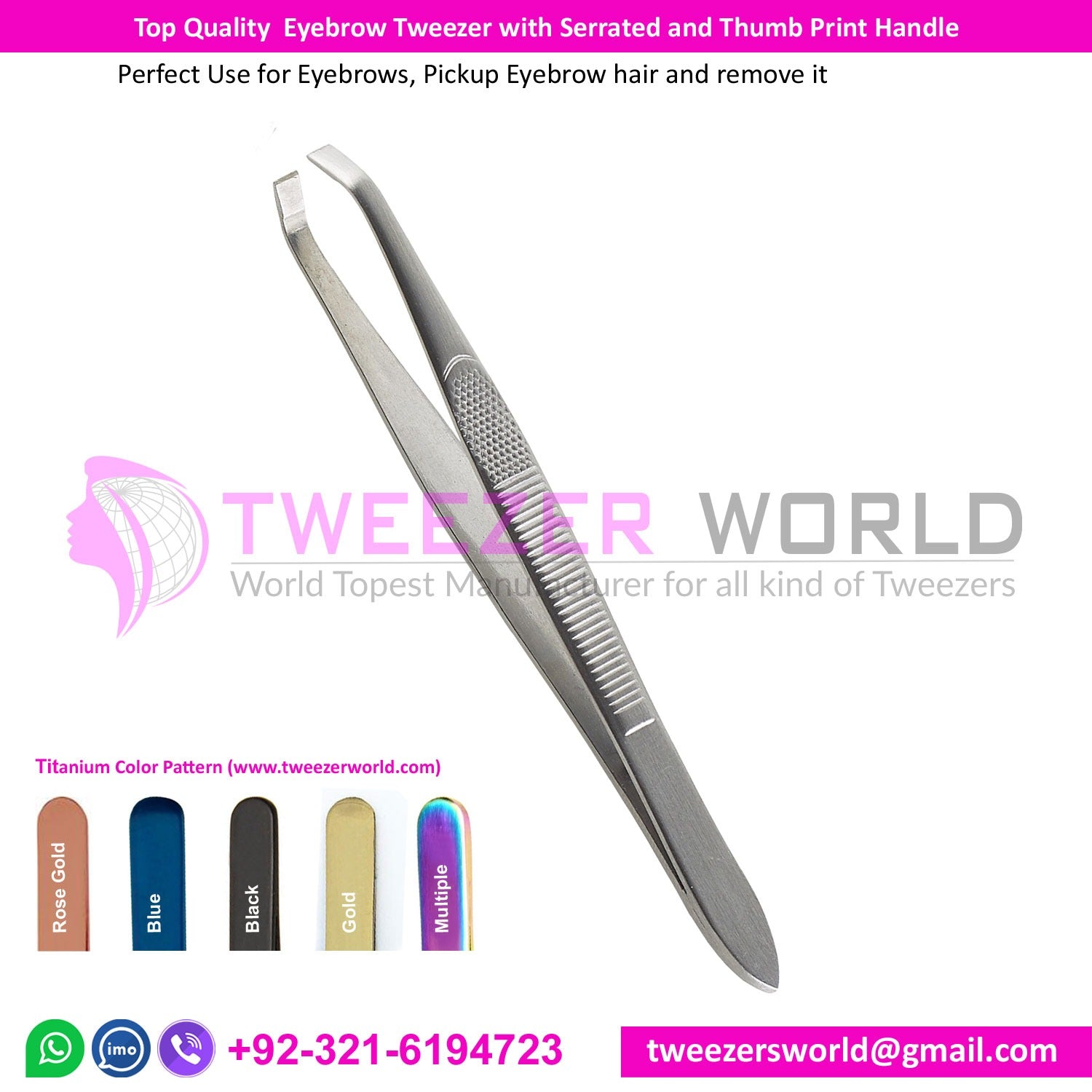 Product Name: Top Quality Eyebrow Tweezer with Serrated and Thumb Print Handle