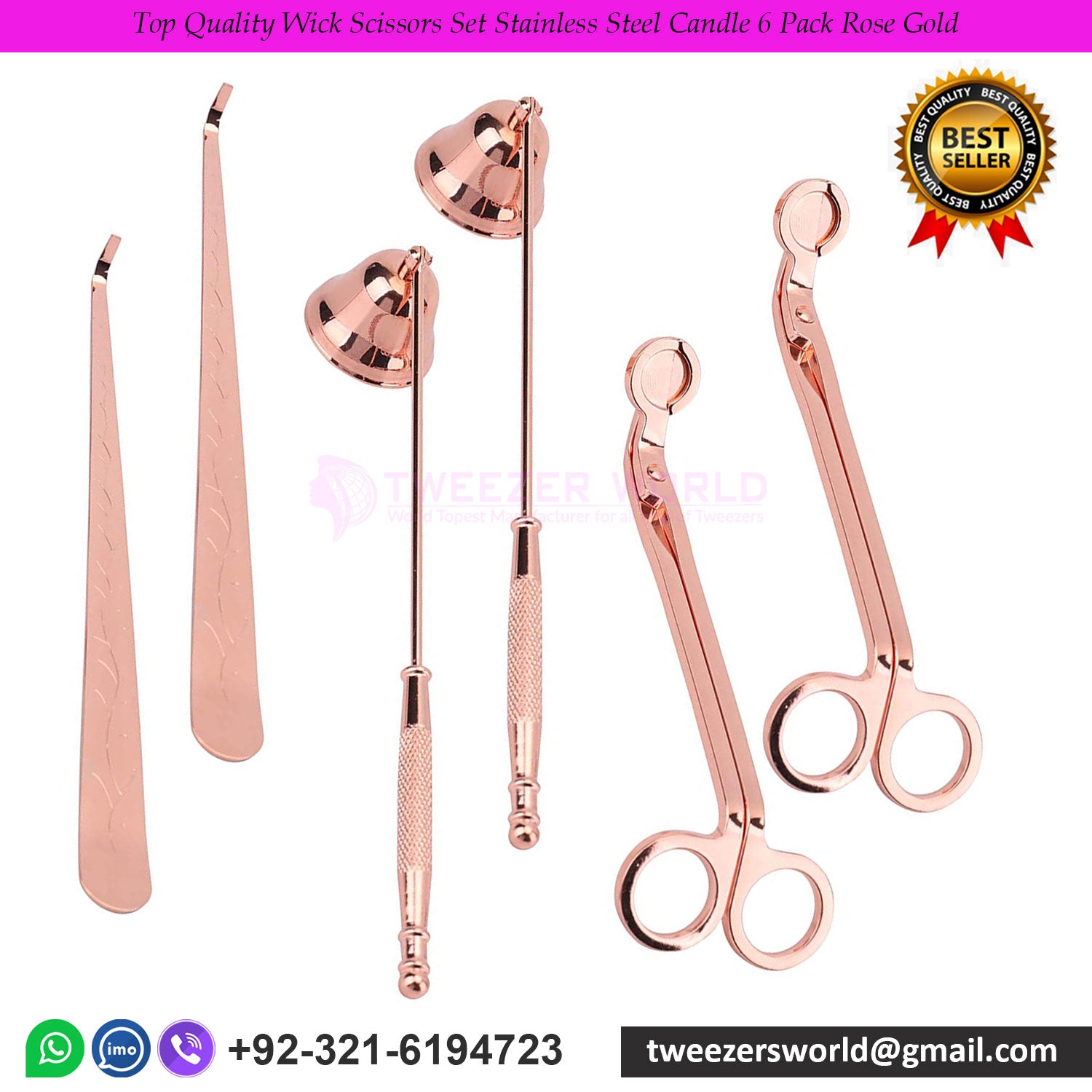 Products Name: Top Quality Wick Scissors Set Stainless Steel Candle 6 Pack Rose Gold Manufacturer By TWEEZER WORLD