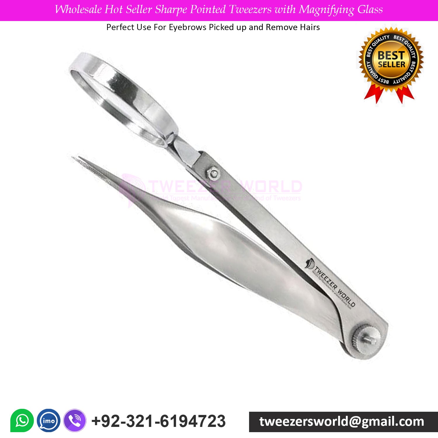 Wholesale Hot Seller Sharpe Pointed Tweezers with Magnifying Glass